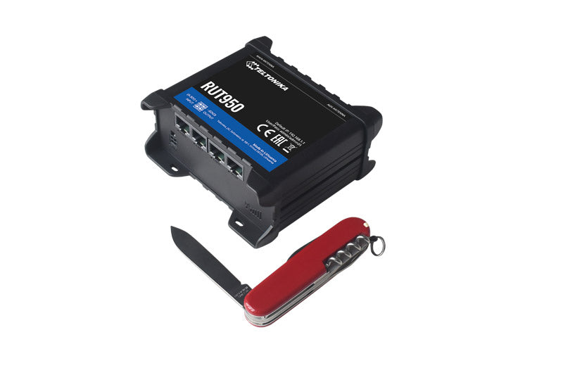- Dos soportes SIM externos, I/O digital, y LEDs indicadores del estado de la señal LTE.